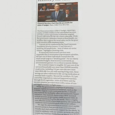 If community food recovery services were suspended due to termination of government subsidies, 68.9 per cent of these individuals warned that their life stress would surge to a “breaking point”. For our elderly on limited budgets, food recovery is not merely an environmental gesture; it is a critical economic lifeline.