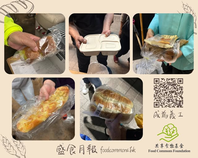 尖沙咀/深水埗:共回收麵包1059個(105.9公斤);共回收飯盒212個(106公斤)。出動義工51人次,全數分享予尖沙咀的露宿者、低收入人士和清潔工友共1059人次。