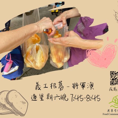 共享食物基金誠徵有心有力的你,成為將軍澳區周六晚上麵包分享義工。