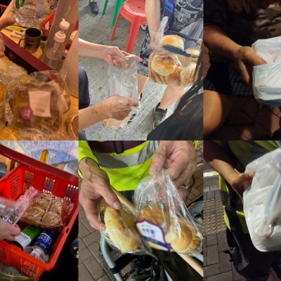 共享食物基金的義工繼續每周出動,在火炭、大埔、土瓜灣、粉嶺和跑馬地這五個地區進行回收麵包及飯盒分享行動。義工們在五區共回收389件麵包以及26個飯盒,共重64.59公斤,惠及307人次。我們仍然需要義工一起惜食助人,歡迎加入!
