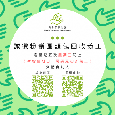 共享食物基金的義工繼續每周出動,在火炭、大埔、土瓜灣和粉嶺這四個地區進行回收麵包分享行動。義工們在四區共回收283件麵包,重41.82公斤,惠及169人次。我們仍然需要義工一起惜食助人,歡迎加入!