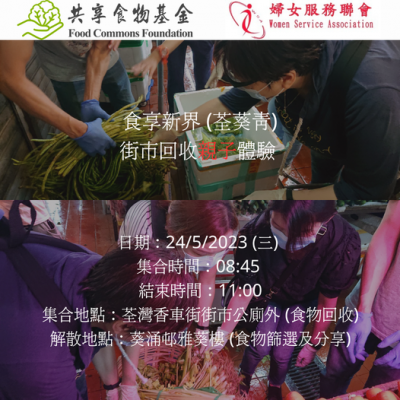 食享新界 (荃葵青) 街市回收體驗加開5月24號(星期三),並新增親子部分,7歲以上小朋友在家長陪同下也可參加。