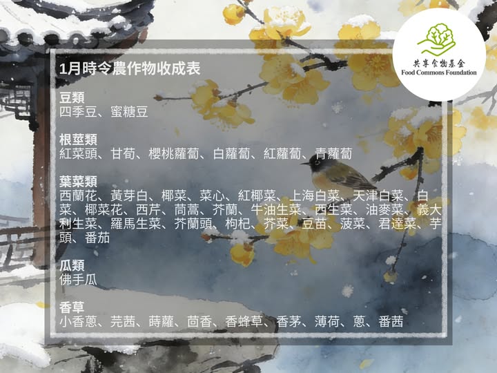1月時令農作物收成表